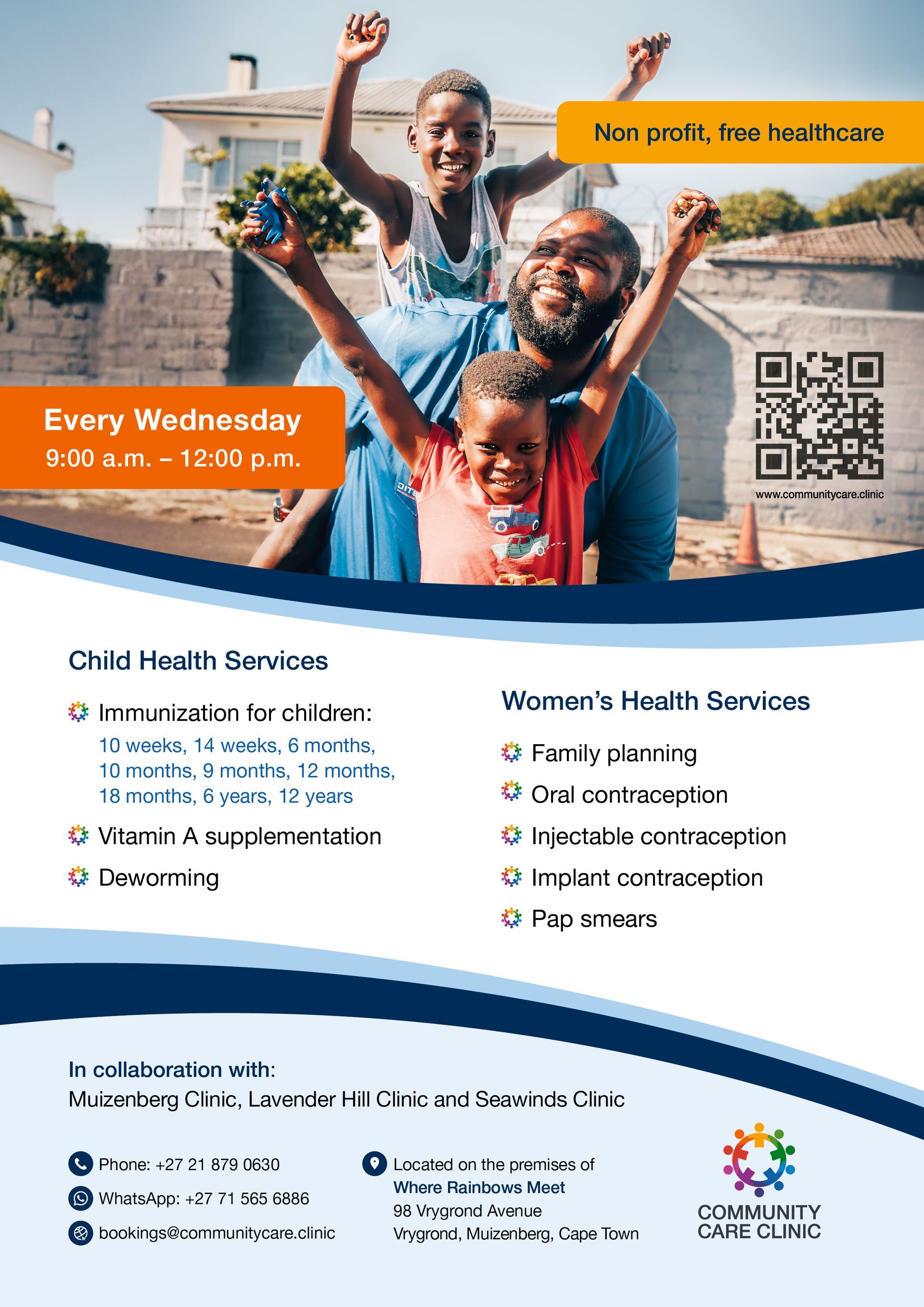 Wednesday Services at the Community Care Clinic in collaboration with Muizenberg Clinic, Lavender Hill Clinic, and Seawinds Clinic.